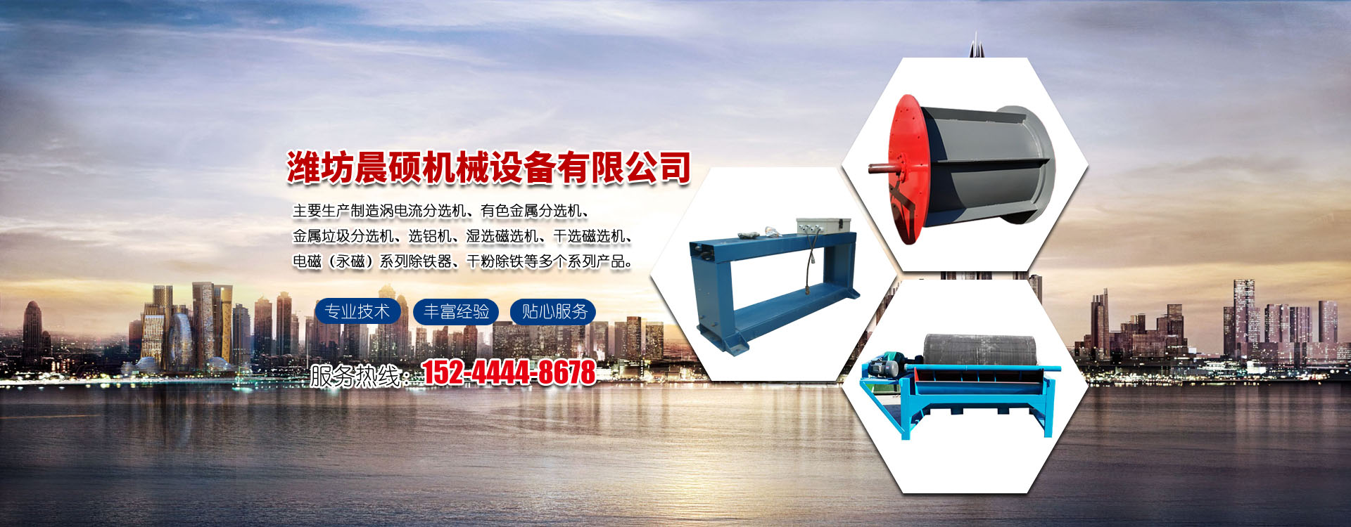 主要生產(chǎn)制造渦電流分選機、有色金屬分選機、金屬垃圾分選機、選鋁機、濕選磁選機、干選磁選機、電磁(永磁)系列除鐵器、干粉除鐵等多個(gè)系列產(chǎn)品。